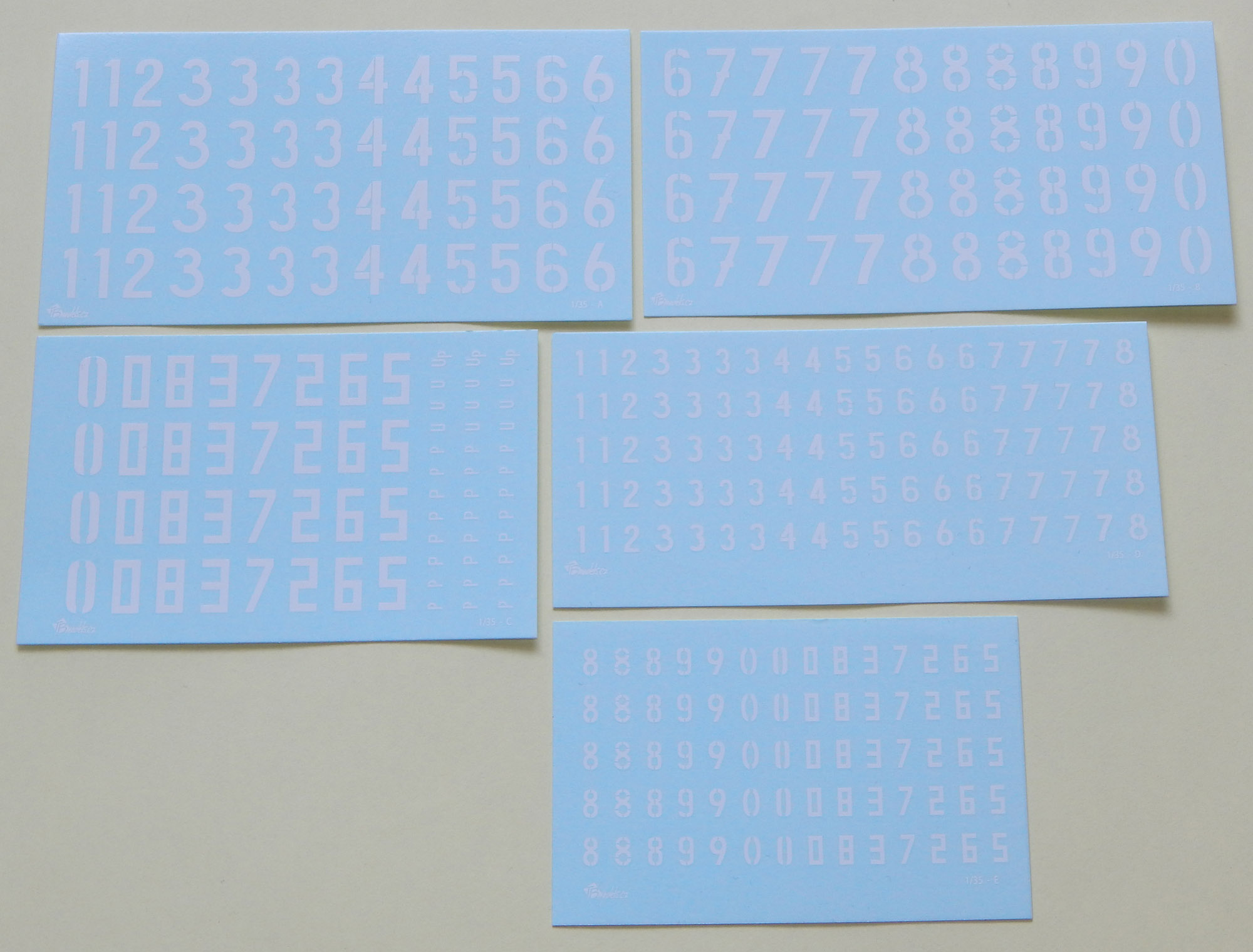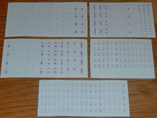 sada obtisků věžových čísel o výšce 11,4mm ( 400mm ) a 5,7mm ( 200mm )